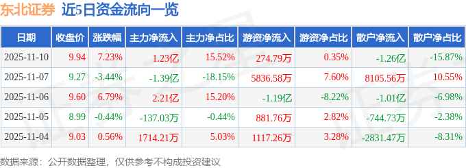 11月10日的资金流向数据方面,主力资金净流入1.23亿元,占总成交额15.52%,游资资金净流入274.79万元,占总成交额0.35%,散户资金净流出1.26亿元,占总成交额15.87%。