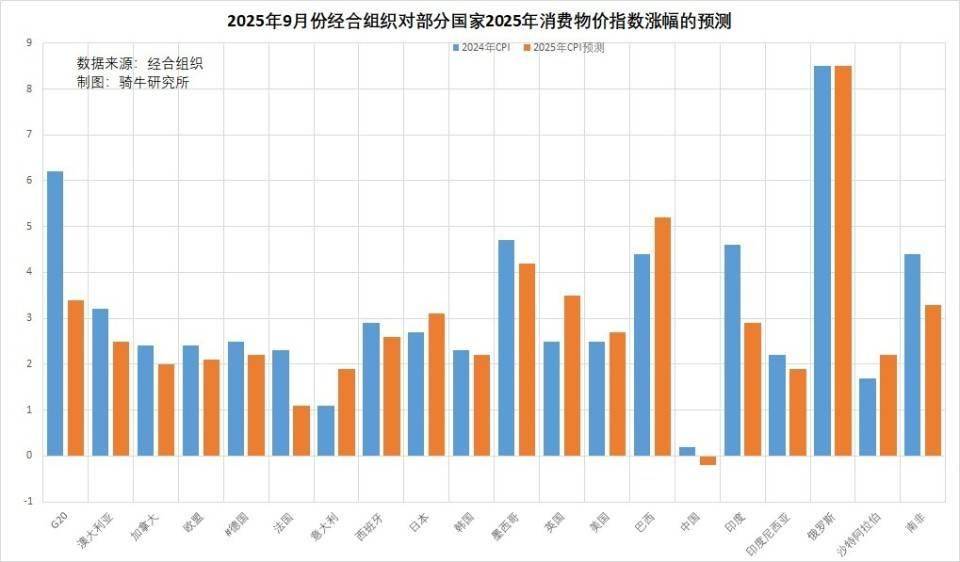报告称,随着经济增长放缓和劳动力市场压力的缓解,预计大多数 G20 经济体的通胀将下降。预计G20经济体2025年的总体通胀率预计为3.4%,略低于6月份的3.6%预测。 2026年降至2.9%,G20发达经济体的核心通胀率基本保持稳定,2025年为2.6%,2026年为2.5%。