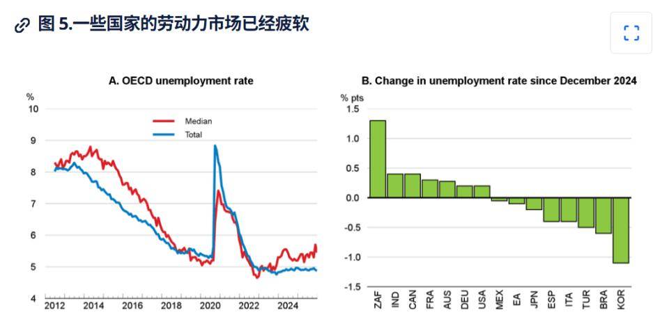 报告称,由于一些国家失业率上升和职位空缺减少,劳动力市场显示出疲软的迹象,包括美国在内的一些经济体失业率上升,职位空缺占失业人数的比例下降。而通货紧缩进程似乎已经趋于平缓。