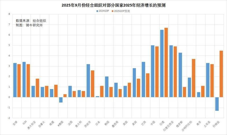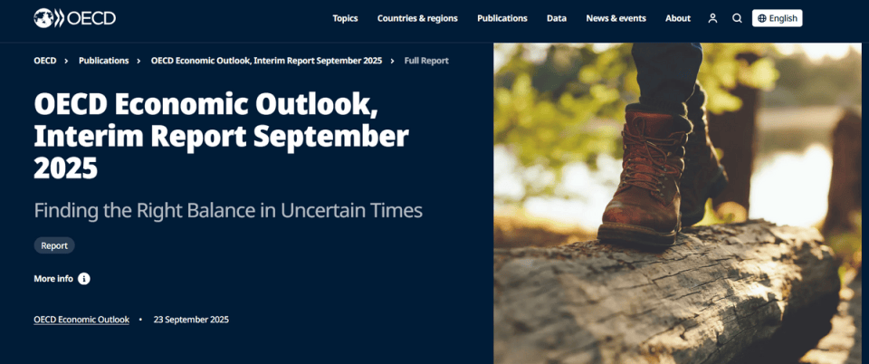 9月23日,经合组织发表《经合组织经济展望,2025年9月中期报告》。报告认为,2025年上半年,全球经济增长比预期更具韧性,世界经济年化增长率为3.2%。