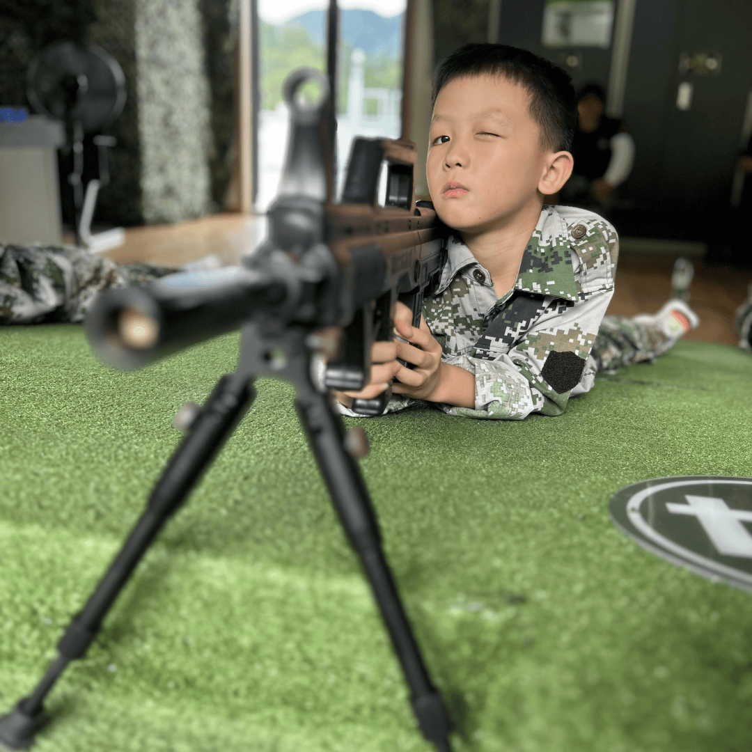 来自余杭区良渚第二小学的杨恩一来到射击体验场地,在瞄准与击发中学会沉着冷静,在专注与坚持中,深植勇敢与担当。