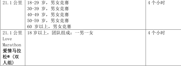 团队组成:2人(1男1女)。参赛距离:21.1公里。参赛者须共同起跑、沿赛道共