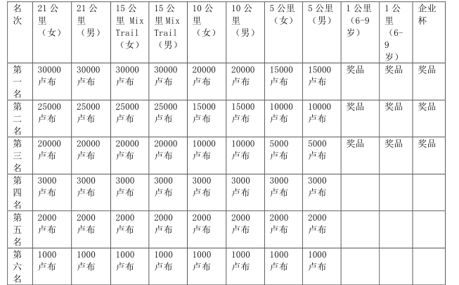 男女个人5公里、10公里、15公里Mix Trail混合越野跑和21.1公里项目绝对优胜者和获奖者,儿童跑赛各年龄段1公里参与者以及企业杯团队冠军将获得纪念奖杯。