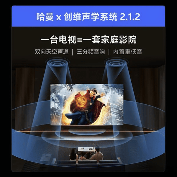 哈曼 x 创维声学系统:配备了哈曼与创维联合开发的声学系统2.1.2,提供高音质的家庭影院效果,让你在家也能享受影院般的听觉盛宴,音质震撼人心。